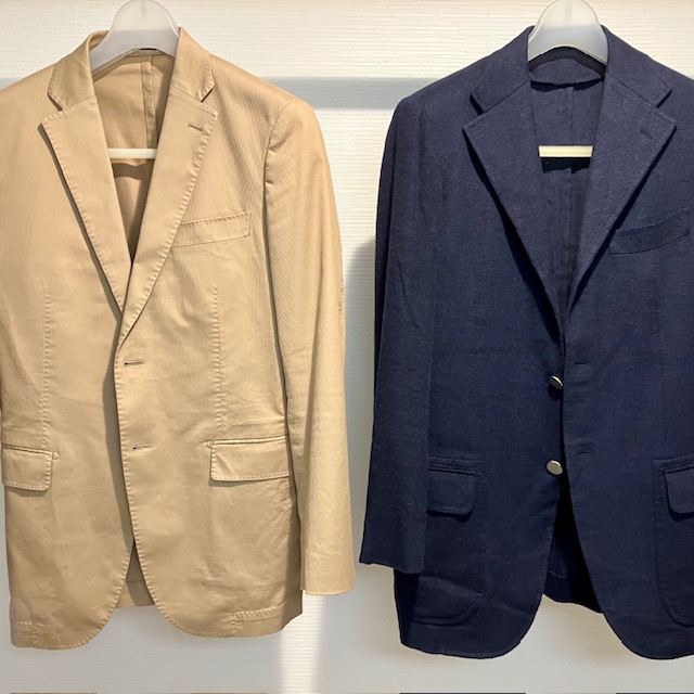 「自分で紺ブレを袖出し」。プロには到底及びはしませんが、素人の初めての試みとしては意外となんとかなったかなと。ただ、熱でサイズを縮めるのは思い通りにいかない恐れもあるのであまりお勧めはできないかも。
