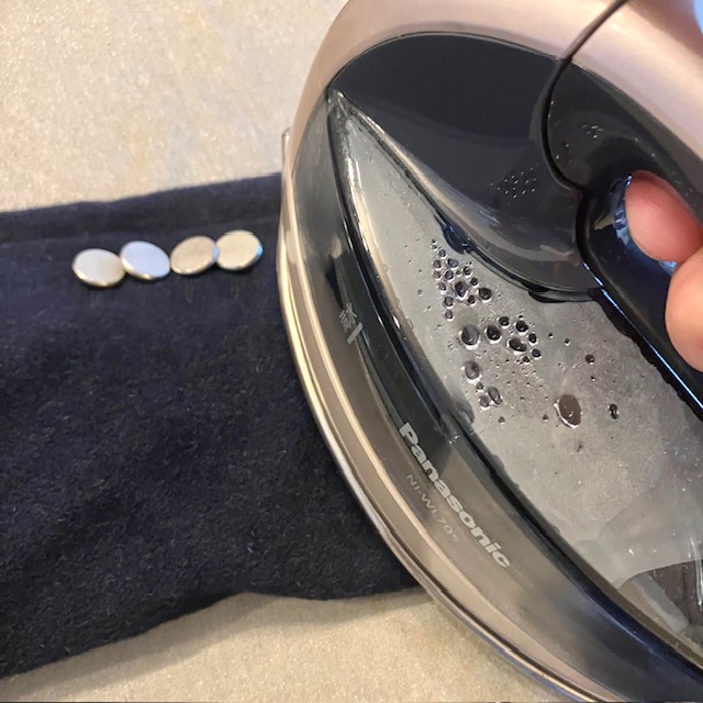 内側からアイロンをかけ、新しい折り目をつける。ここは少ししっかりめにアイロンがけ。