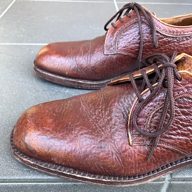 うん、確かにウォーターバイソンですね。このアッパーのペアは他にも何足か持ってますが、分厚くて丈夫で、ややカジュアルな感じで、多少のキズなどはあまり気にならないところがチャームポイントかと。