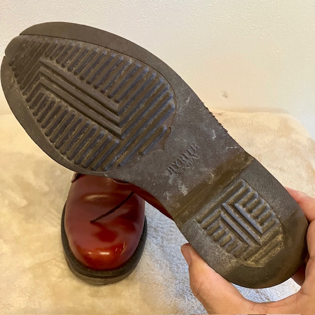 こんな安いのに、で、モノは相当な本格派なのに、売れゆく気配はなかったのでしょうか。どのくらいここに鎮座していたのでしょうね。そりゃまあ、いくら安くとも、「SHOES FOR MEN」との文字を見た時点で女性の皆さんはスルーするかも。サイズが小さいので男性向けでもない。結局、私がお店にやってくるのを今か今かと待っていたと思われます。かわいいやつです。